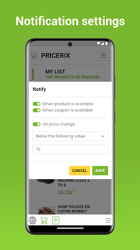 Depending on your preferences and selected settings, Pricerix can send push notifications for:
