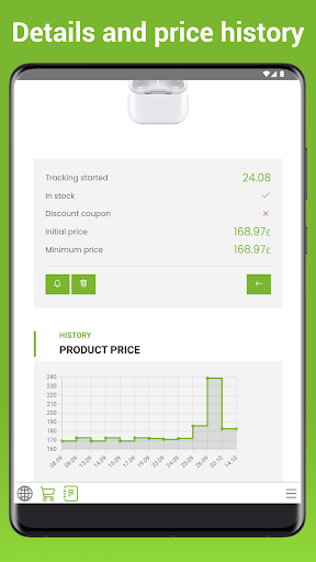 For every added product, the initial and lowest prices are saved, and a price change chart is displayed.